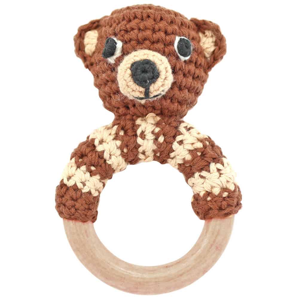 Erster Spielspaß für die Kleinsten. Eine wunderschöne Bär-Rassel zum ersten Greifen, Kuscheln und Spielen.